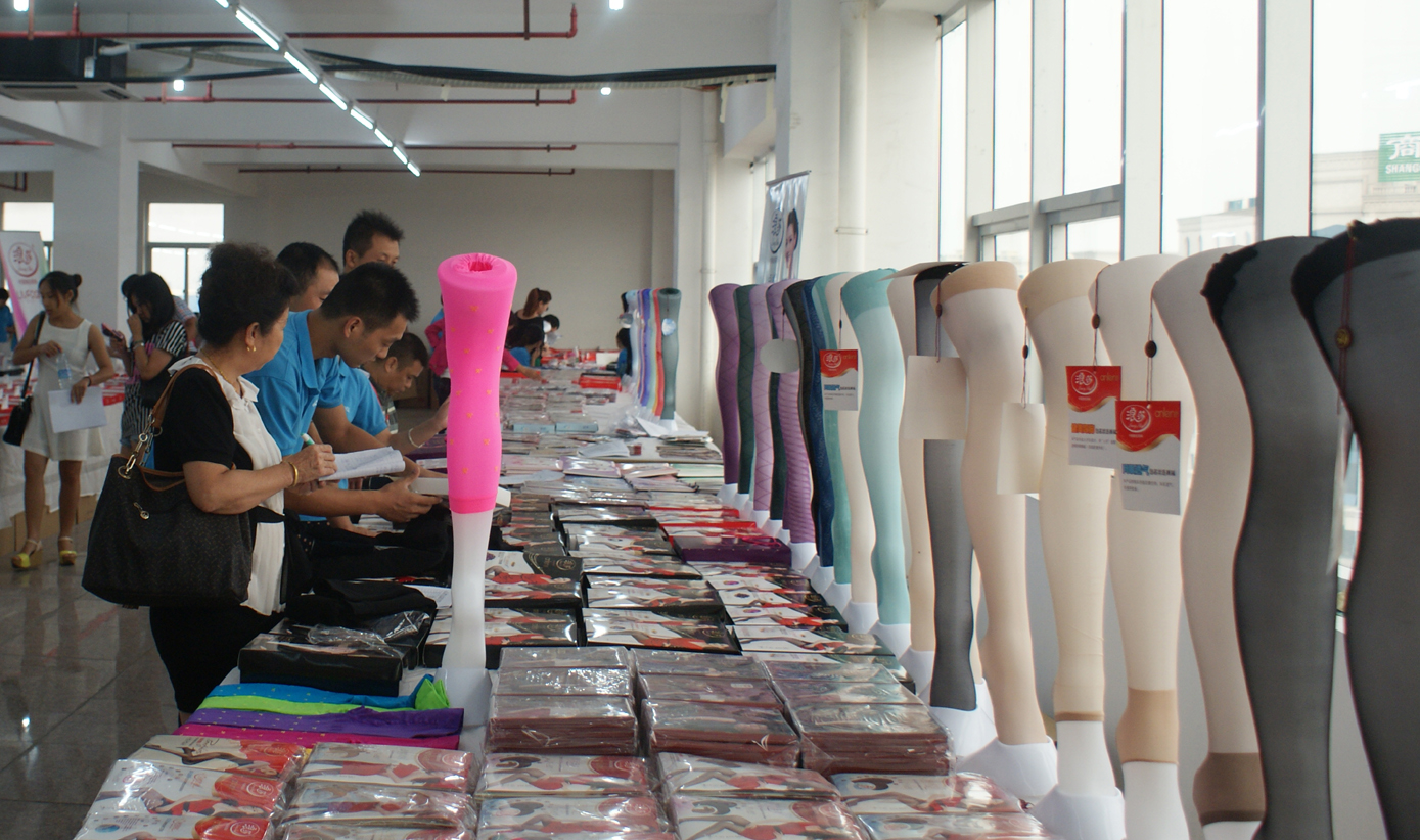 浪莎針織有限公司每年進行多次新品選貨會,讓客戶可以第一時間搶訂到市場暢銷的產品,抓住最佳的市場銷售機會。圖為,客戶在公司工作人員的介紹下選貨。