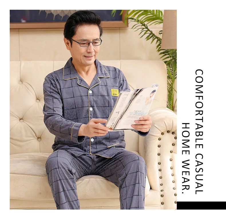 浪莎男士睡衣男長袖棉春秋冬款開衫休閑青年中年睡衣家居服可外穿